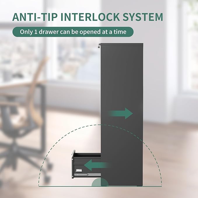 - 【SMOOTH DRAWER】This 5 drawer file cabinet with lock has been improved, the drawer stiffness, drawer not closing correctly and drawer misalignment have been improved, making the drawer of the black file cabinet can be drawn on the slides to slide correctly, smooth pulling and smoother edges, and will not fall over randomly when the vertical file cabinet 5 drawer is fully opened.