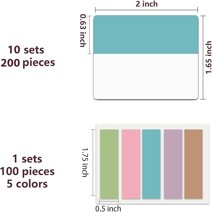 - 300pcs Book Tabs: 300 pcs 21 sets in total, 200 pieces 2 inch sticky tabs in 10 sets with different pastle colors,100 pieces 0.5 in tabs in 1sets, 20 pieces each color