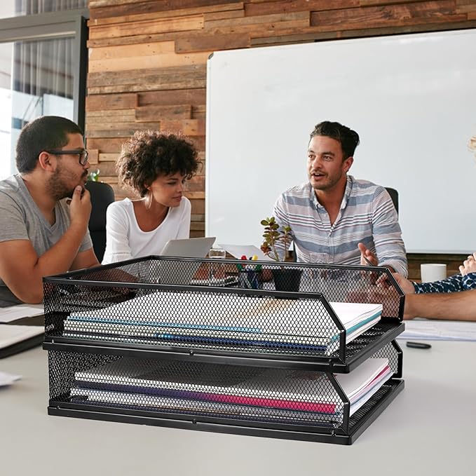 Stackable Paper Tray Organizer, Metal Mesh Wire Letter Tray, Letter Trays Organizers, Front-Load Paper Holder Storage for Office, School, Home,2 Pcs