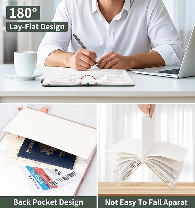 - 180° Lay-Flat Design: This A5 notebook features a 180° lay-flat design, allowing you to write comfortably across the entire page. The flat-open feature makes it ideal for journaling, note-taking, and creative writing, providing a seamless and efficient writing experience without any creasing or bending.