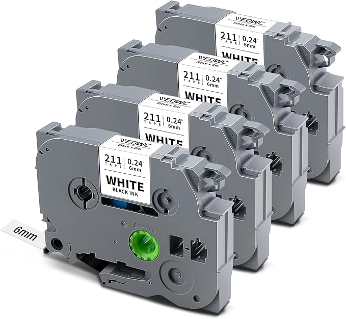 TZ Tape 6mm 0.23 Laminated White Label Tape Tz-211 Compatible for Brother P-Touch Tze-211 1/4" Tze Label Refills Work for Ptouch Label Maker PT-D220 PT-D210 PT-H110 PT-D400, Black on White, 4-Pack