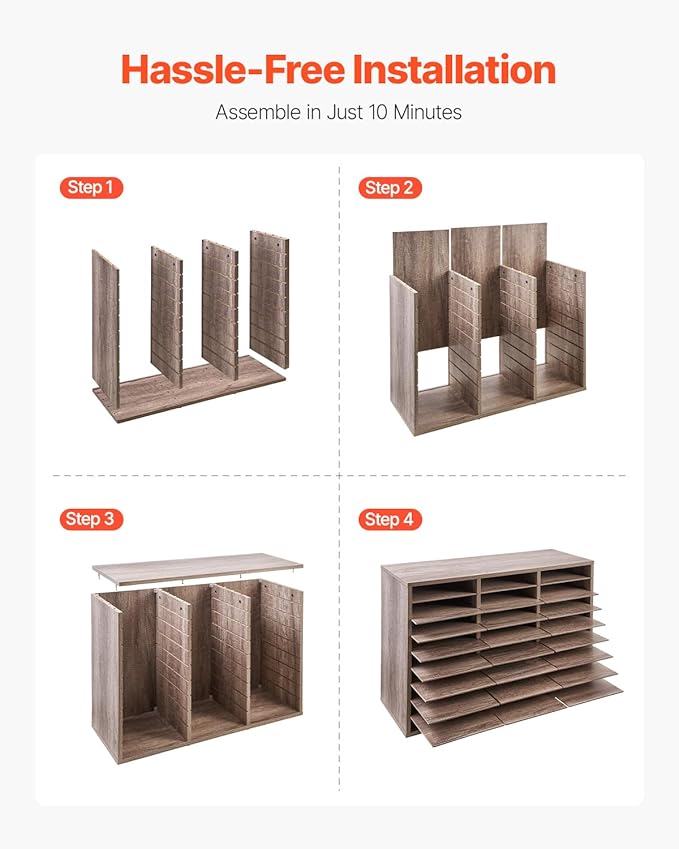- Quick Assembly: Get organized in no time with the wood file sorter. Its simple panel design and clear instructions mean you can assemble it in just 10 minutes. No hassle, no fuss—just a tidy and efficient workspace.