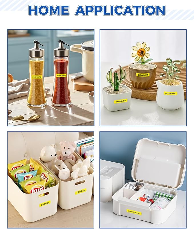 - Features: Our 12mm 0.47" yellow label maker tape split design makes the label tape easy to peel and apply, with strong adhesion/waterproof/temperature/oil/abrasion/fading, and reliably sticking to various surfaces