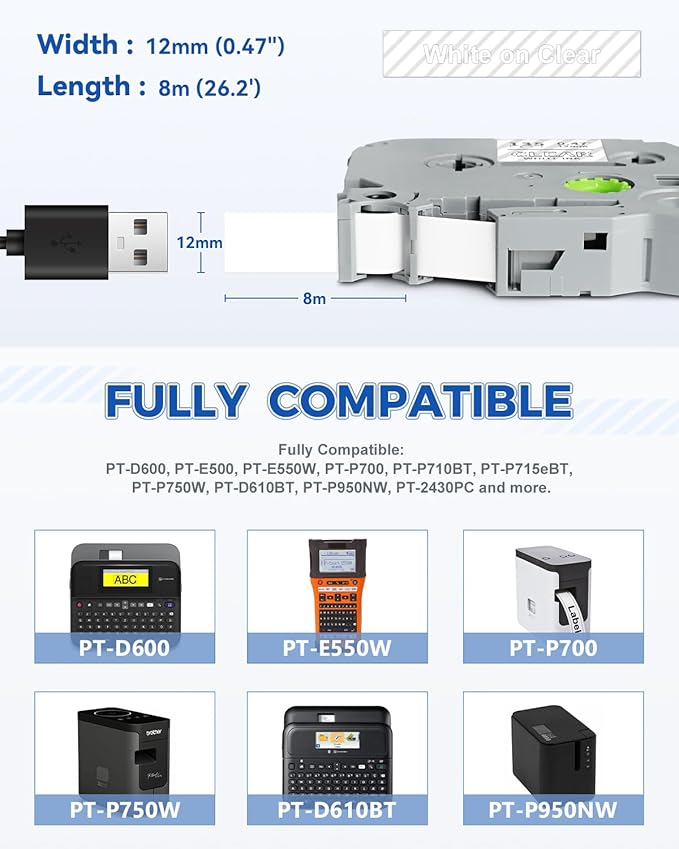 - Widely applicable: These 12mm 0.47 laminated clear label tapes are suitable for indoor and outdoor use. Compatible with Brother label maker tape 12mm 0.47 laminated clear can be used to label various items such as home, office, industrial, supermarket, school, and other supplies