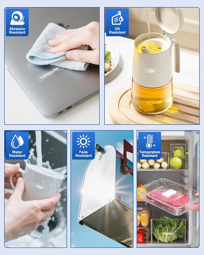 - Features: Our 12mm label maker tape split design makes the label tape easy to peel and apply, with strong adhesion/waterproof/temperature/oil/abrasion/fading, and reliably sticking to various surfaces