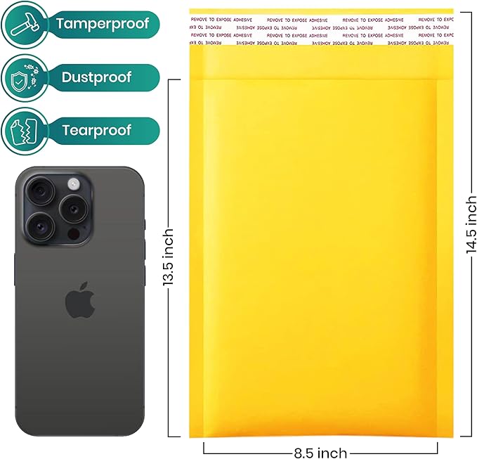 - SIZE SPECIFICATIONS: Pack includes 50 mailers measuring 8.5 x 14.5 inches, perfect for shipping small items and documents with a usable inner space of 8.5 x 13.5 inches