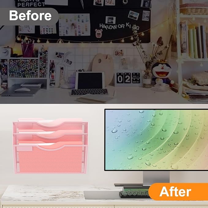 Kuntine.B Wall File Organizer Office Hanging Magazine Holder Wall File Organizer for Office Home (Pink, 3 Tier)