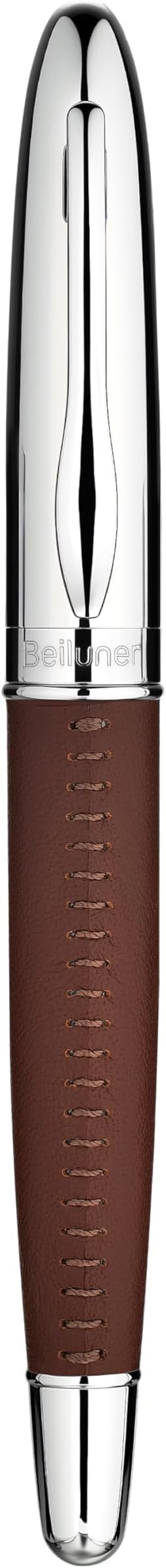 BEILUNER 318 Luxury Leather Pen, Hand-Stitched Premium Leather, Chrome-Plated Finish, Schmidt Ink Refill, Fancy Rollerball Pen Gift Set for Men & Women, Executive Writing, Nice Designer pen