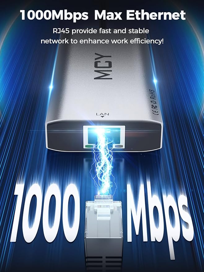 - 【100W PD Pass-Through Fast Charging】The usb laptop hub has a USB Type C 100WPD charging port, which can quickly charge your laptop/tablet/phone when you use other ports. When the thunderbolt usb c hub is fully loaded, there is no need to worry about the laptop losing power. And when you work or play, you can connect to the 1000Mbps Ethernet port of the powered usb c to ethernet adapter, providing you with a stable and fast network, ensuring efficient and fast work and ultra fast internet experience.
