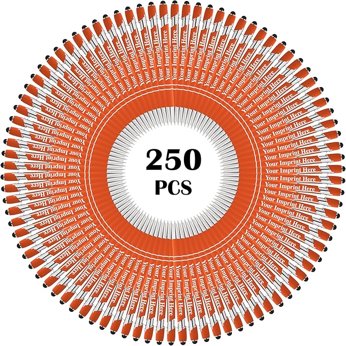 Up to 500 Pcs Custom Pens Bulk | Rainbow of Colors | Soft-Touch Metal Black Ink Personalized with Name or Message (Orange, 250 pcs)