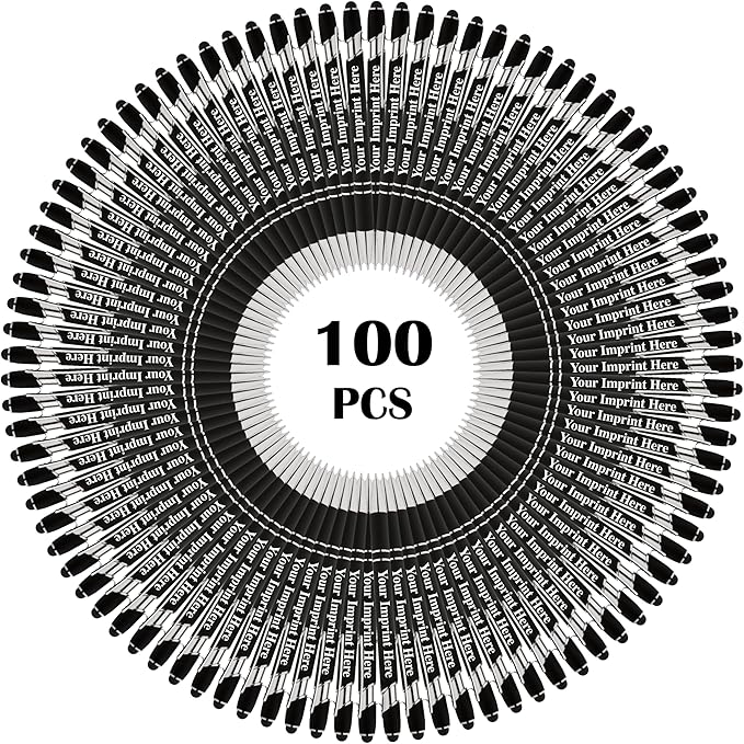 Up to 500 Pcs Custom Pens Bulk | Rainbow of Colors | Soft-Touch Metal Black Ink Personalized with Name or Message (Black, 100 pcs)