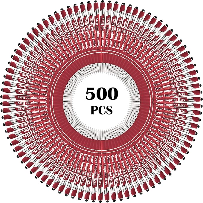 Up to 500 Pcs Custom Pens Bulk | Rainbow of Colors | Soft-Touch Metal Black Ink Personalized with Name or Message (Red, 500 pcs)