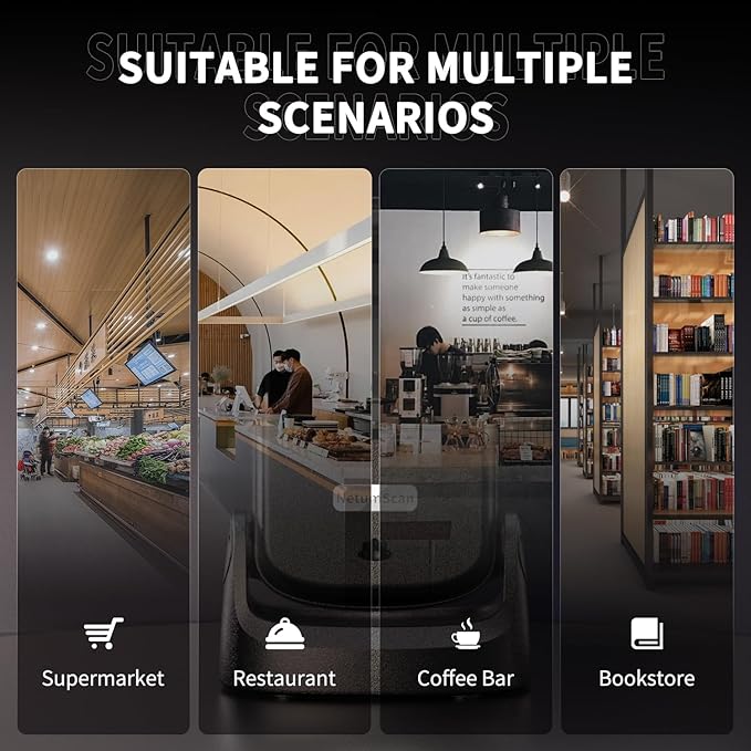 - 【1M High-Resolution CMOS Sensor】Equipped with a 1280×800 CMOS sensor, this scanner delivers rapid, precise, and stable barcode recognition, ensuring swift processing even for small or damaged barcodes. Widely used in supermarket, convenience store, retail shop, library, drugstore, catering services and other industrials which need payment scanning.