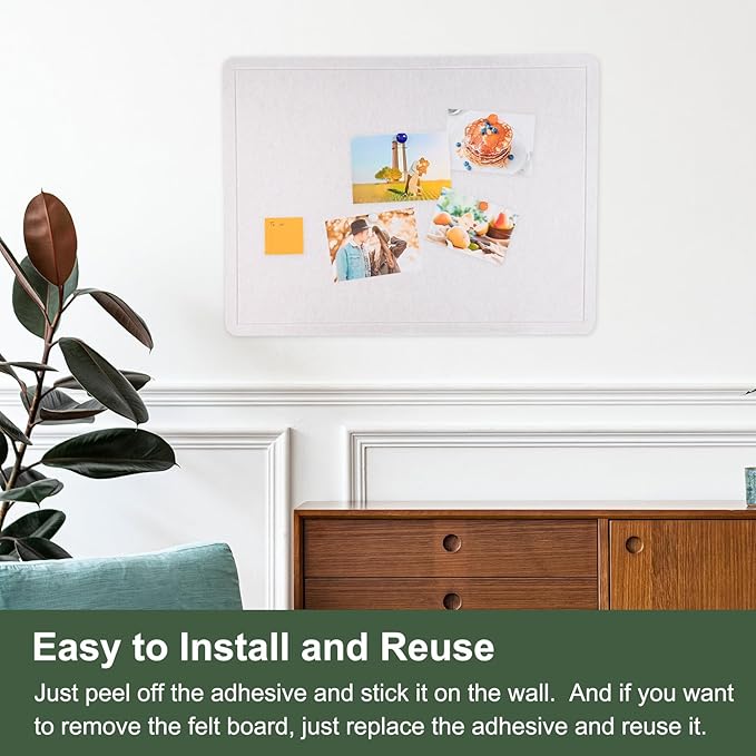 - Multi-purpose - Felt Picture Board is of suitable size, simple and beautiful, and can be used in scenes such as offices, rooms, cafes, etc. The felt material is softer, and pushpins can be used to hang sticky notes, photos, schedules, calendars, planners, notes, etc., and can also be used to hang keys and necklaces.