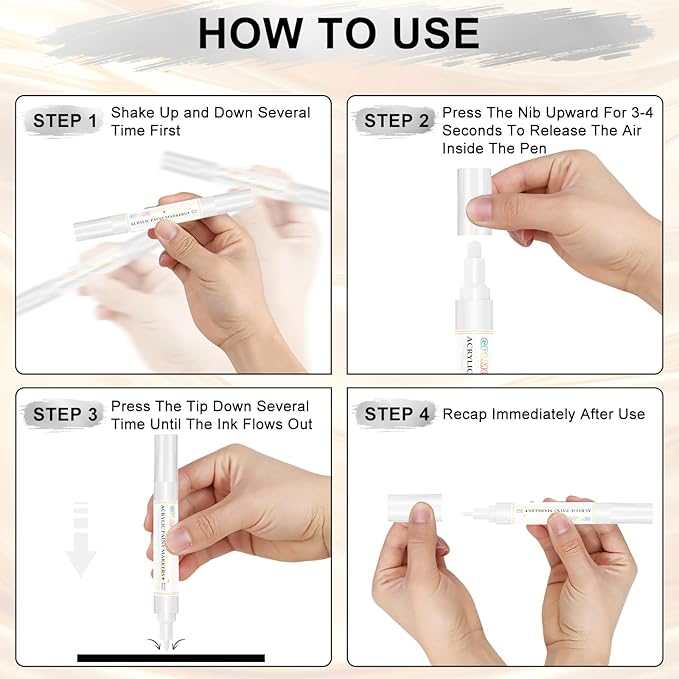 - Multi-Surface Use: This acrylic paint pen has a strong covering power, perfect for a variety of surfaces including stone, ceramic, glass, wood, fabric, metal, plastic, and more. Great for crafting, labeling, and adding creative touches to sneakers, pottery, and terracotta