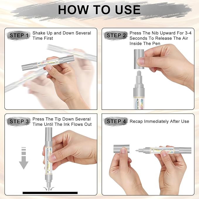 - Dual-Tip Design for Versatility: Each paint pen features a 0.7mm fine tip for detailed lines and a 3mm medium tip for filling larger areas, making it perfect for outlining, lettering, and adding intricate details to your DIY projects