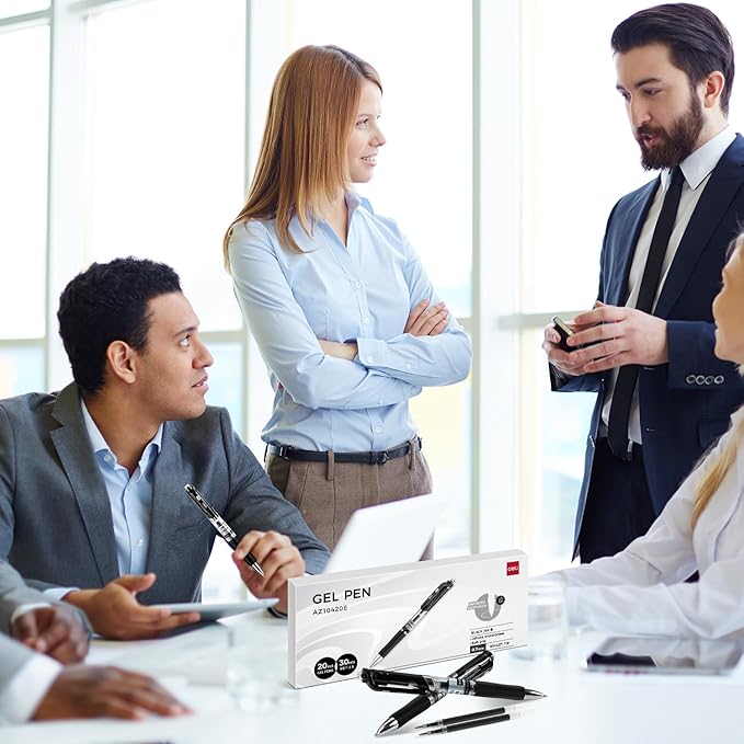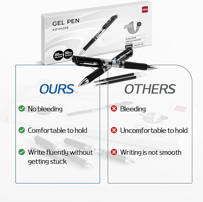 deli Gel Pens, 50 Pcs Retractable Pens Black Ink, 20 Pens with 30 Refills,Medium Point Pen Bulk 0.7mm, Smooth Writing, Fast Dry, No Bleed for Journaling Note Taking, Home School Office Supplies