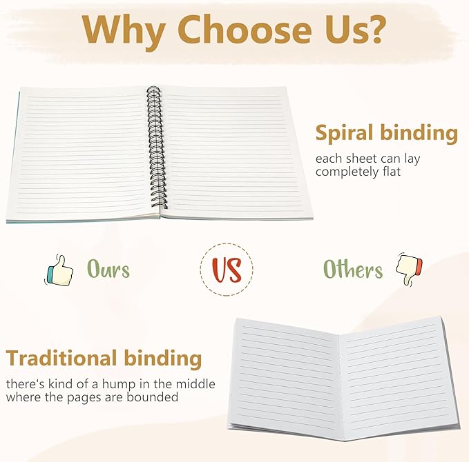 - Smooth to Write: each spiral journal notebook has 60 sheets (120 pages), and each page adopts quality 80gsm white paper, smooth and easy to write, preventing ink infiltrating into the next page, and mild colors can avoid eye fatigue and bring comfortable experience