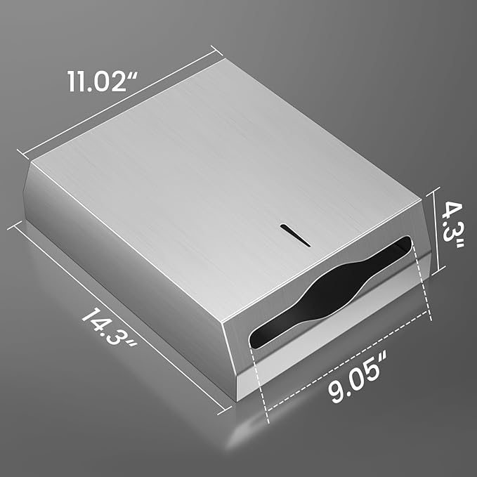 - 【Large capacity 】Made of 304-grade stainless steel, Measures 11" width by 14.3" height by 4" depth,Holds up to 400 C Fold/525 Multifold Towels