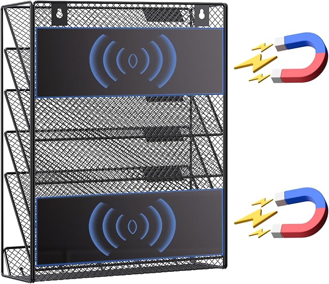 samstar Magnetic Wall File Holder, 6-Tier Hanging Wall File Organizer Wall Mount Paper File Folder Mail Organizer for Office/School, Magnetic