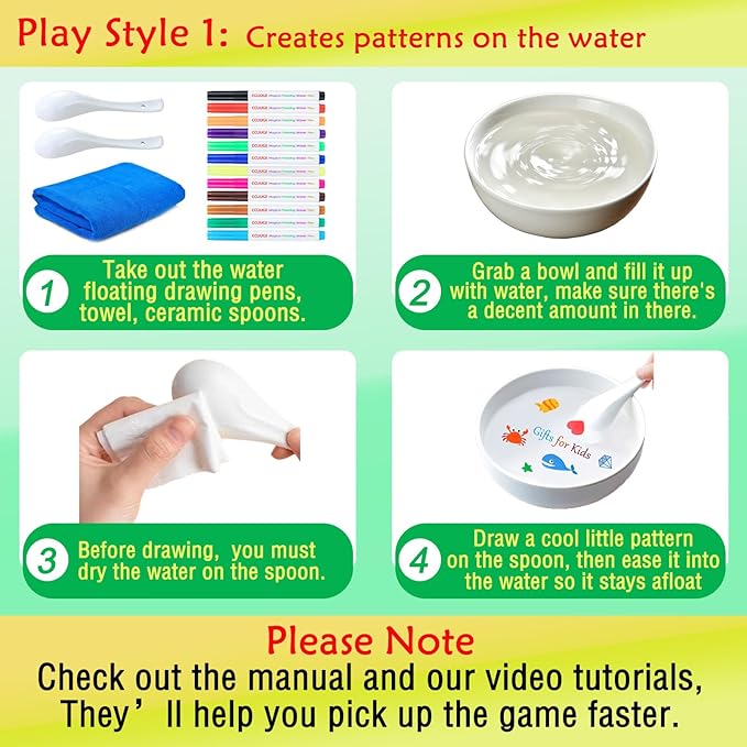 - ðNotice: Be sure to watch our video before using it. It can help you quickly understand the usage of the float ink water paint pen for children, how to make tattoos pictures for kiddie. If you experience any issues with your product, please contact us.