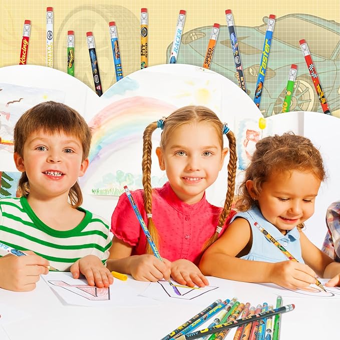 - Pack of 100: the package comes with 100 race car pencils in 6 different designs, enough style and quantity to meet the needs of your daily use; Classical car racing print colors and patterns make these wooden pencils a joy to share, nice as party fillers and gifts exchanging