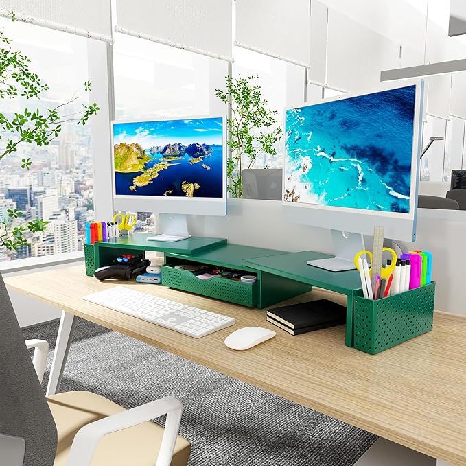 - Dual-screen office efficiency improvement: This desktop organizer is equipped with a dual-display stand, which can place two monitors at the same time, effectively expanding the workspace. It also has adjustable length (27.6-40.6 inches) and angle to provide you with a better viewing experience.