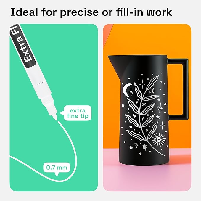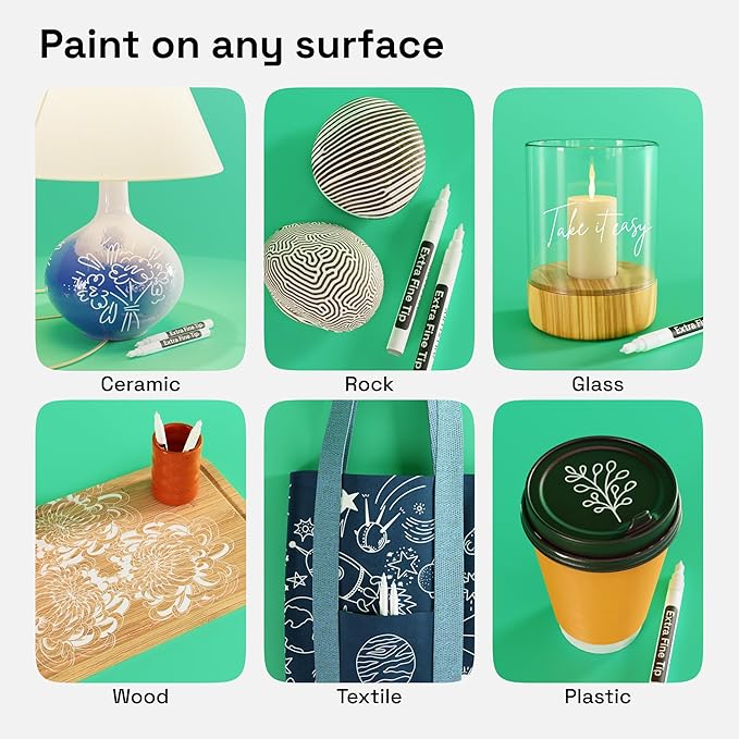 - Extra-Fine Tip: Each oil paint pen is made for fine line work. Detail your DIY project with these oil based pens. Each oil based paint marker will add some shine to your art, no matter the occasion – Christmas, birthday, or wedding decorations!