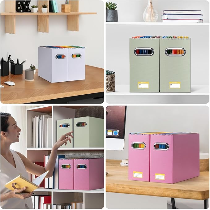 - Optimized Design: The hanging file organizer comes with extra label stickers (the 2-pack option includes 6 labels, while the 4-pack option includes 12 labels), making it easy for users to identify the contents of the files; This portable file box with handle improves your organization and retrieval efficiency