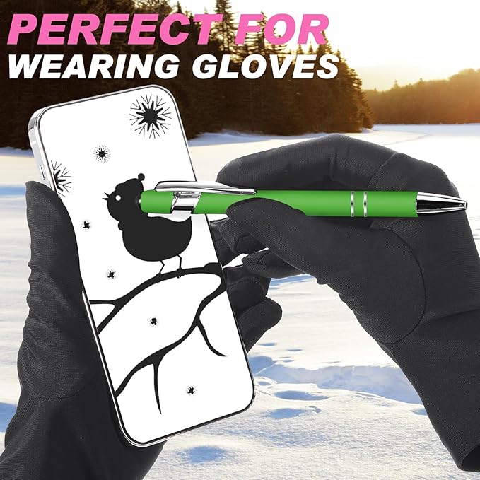 Tenare 12 Pieces 2 in 1 Stylus Metal Ballpoint Pen with Stylus Tip, 1.0 mm Black Ink Ballpoint Pen for Touch Screens (Green and Hot Pink)