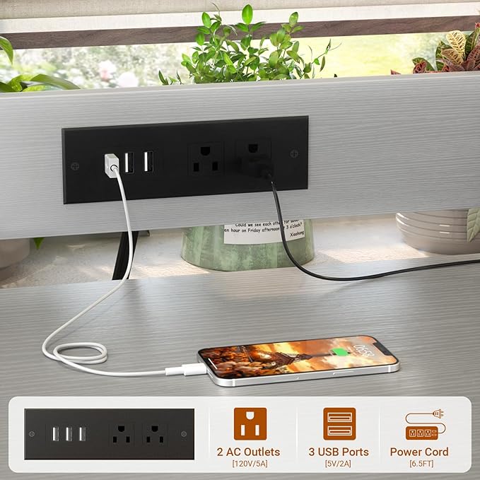 Homieasy Printer Stand with Charging Station, 29.1" x 22.8" Large 3D Printer Table with Filament Storage, Heavy Duty Rolling Printer Cart with 4-Tier Storage for Workshop/Office/Garage, Light Grey