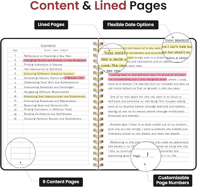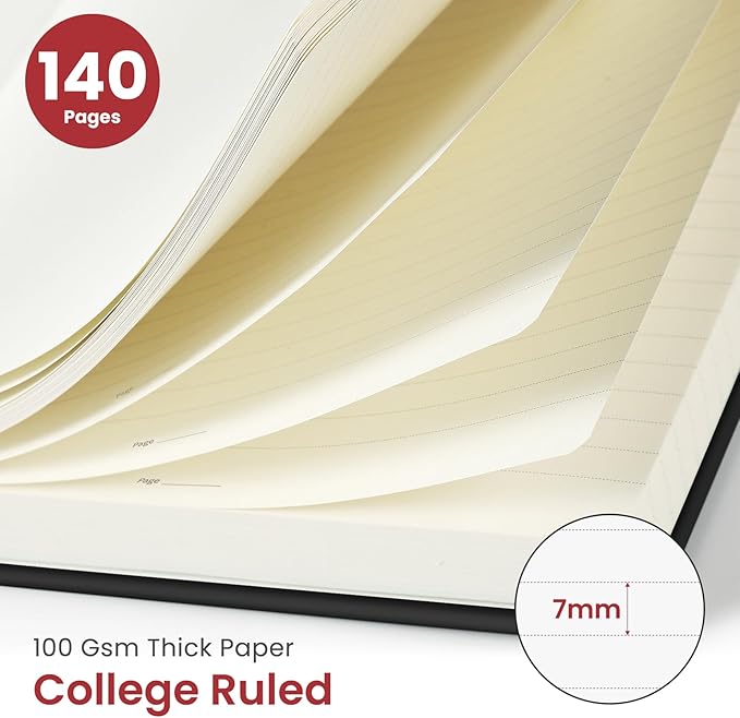 - High-Quality Paper: Each notebook is crafted with 100 GSM thick, ink-friendly paper, preventing ink bleed-through and ghosting. Compatible with various writing instruments, including ballpoint, gel, and fountain pens, every page includes a day header for effortless date tracking.