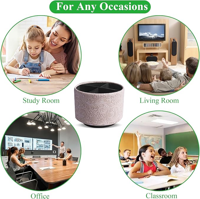 - ✎360° Revolving Design: You can freely rotate the pen holder steadily left and right,unique spinning base design allows easy access to items from any directions.The non-slip pads on the bottom keep it stay in place when rotating.