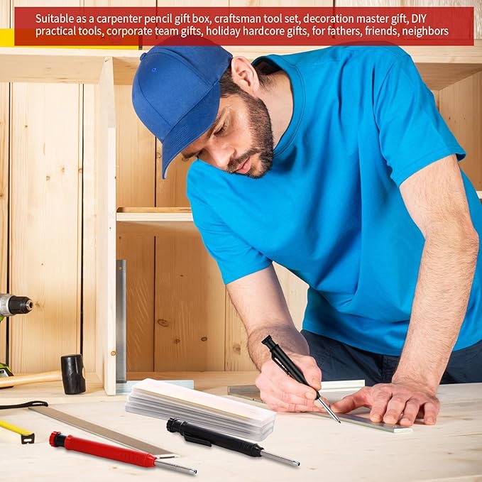 - Package Included: 8-pack mechanical carpenter pencils with 48 pcs 2.8 mm replacement cores, red and black color combination, black pen: black writing has high contrast on dark wood surface and is easy to identify; It can be applied for preliminary cutting lines, rough positioning, and emphasis on marking joints or load-bearing parts that need special attention; The red color is eye-catching and can be applied for warning marks, temporary corrections, and soft wood markings