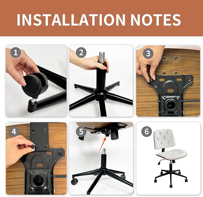 - RELIABLE STABILITY: Our computer chair comes with a durable black metal base and 5 silent casters, and the frame is made of sturdy solid wood and one-piece steel plate.5 universal casters allow movement in any direction. With a great combination of comfort and functionality, this chair is ideal for the home office. Overall dimensions are 21.9“ W x 15.2” D x 32.5“-35.8” H.