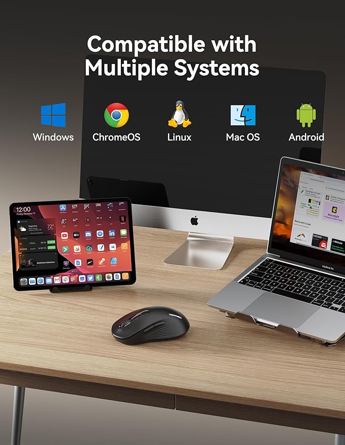 - Works on Multiple Systems - Experience seamless compatibility with Windows, macOS, Linux, Chrome OS, ipadOS, and Android operating systems with this wireless mouse.