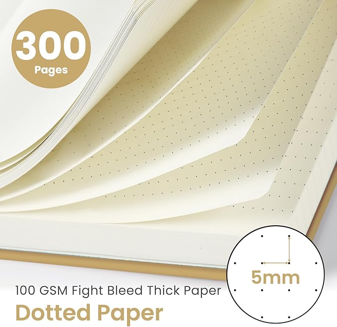 - 300 Pages Dotted Journal: Unleash your creativity with 5mm dot grid pages—ideal for journaling, sketching, planning, or goal tracking. Whether you’re using it as a work notebook, journal for writing, or notebook for school, it fits easily into your daily routine.