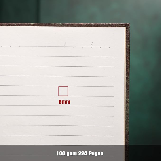 - 100GSM 224 Pages: Selected 100 gsm of high-density paper, thick and wear-resistant and strong anti-permeability, the back of no blotting trouble, long-lasting preservation of clear handwriting. 224 pages of ample space to carry daily inspiration, travel records or long-term journals for in-depth writing and creativity.