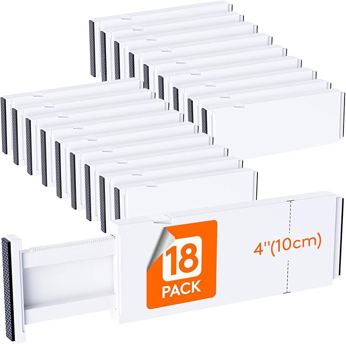 Lifewit 18 Pack Drawer Dividers 4" High, 11-17" Adjustable Drawer Organizers for Clothes, Expandable Dresser Separators in Bedroom/Bathroom/Kitchen/Office Organization and Storage, White
