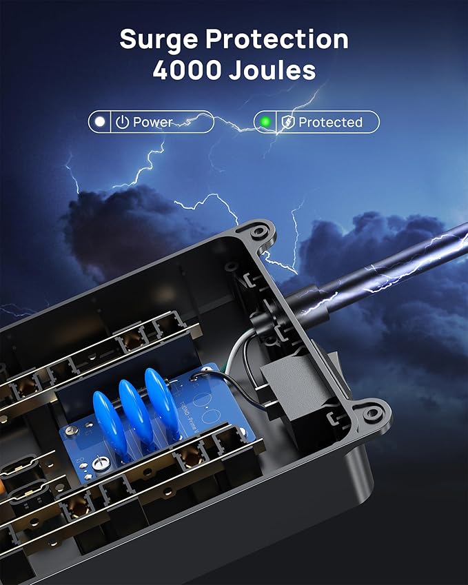- 4000 Joules Surge Protection: It’s ETL listed, and made of the top-grade ul94 v-0 flame-retardant material. With 4000j surge protection, it safeguards your TV, computers, phones & office equipment from potentially damaging power disturbances, creating peace of mind. it has an on/off switch, which can be used to reset it if you overload it and it "pops" the security circuit.