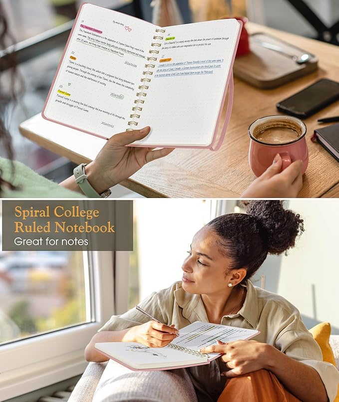 Dotted Spiral Journal Notebook, A5 Hardcover Spiral Journals for Women Men, 100 GSM Dot Grid Paper Notebooks, 150 Pages Spiral Bullet Dotted Notebook for Writing Note Taking 5.75" x 8.38", Blush Pink