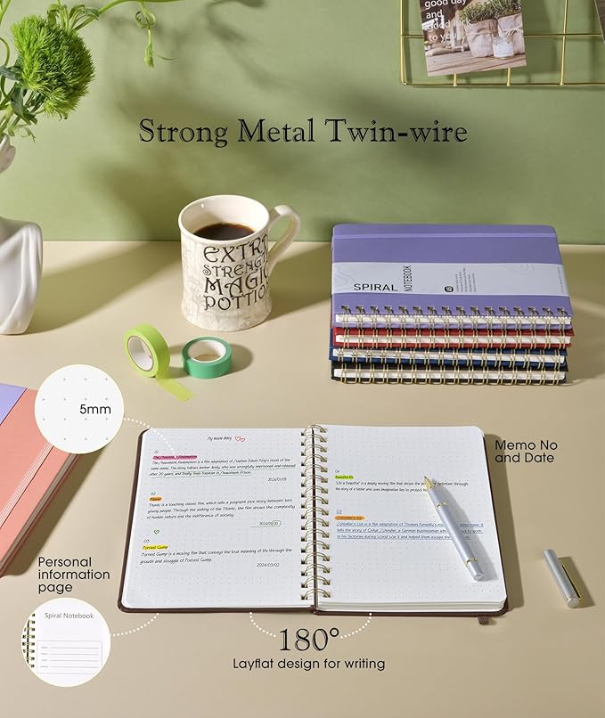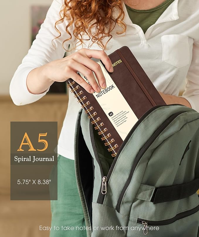 Dotted Spiral Journal Notebook, A5 Hardcover Spiral Journals for Women Men, 100 GSM Dot Grid Paper Notebooks, 150 Pages Spiral Bullet Dotted Notebook for Writing Note Taking 5.75" x 8.38", Dark Brown