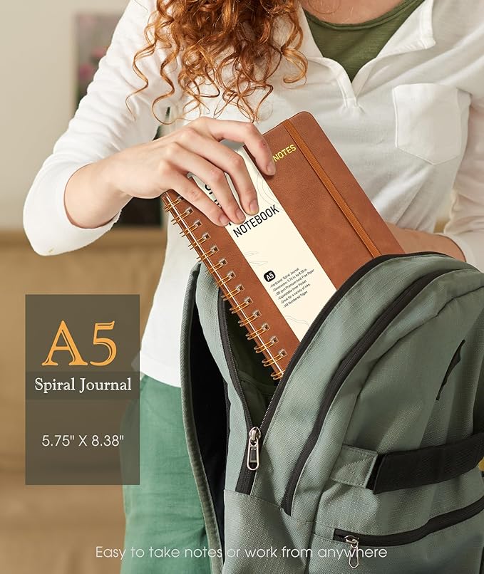 Dotted Spiral Journal Notebook, A5 Hardcover Spiral Journals for Women Men, 100 GSM Dot Grid Paper Notebooks, 150 Pages Spiral Bullet Dotted Notebook for Writing Note Taking 5.75" x 8.38", Brown