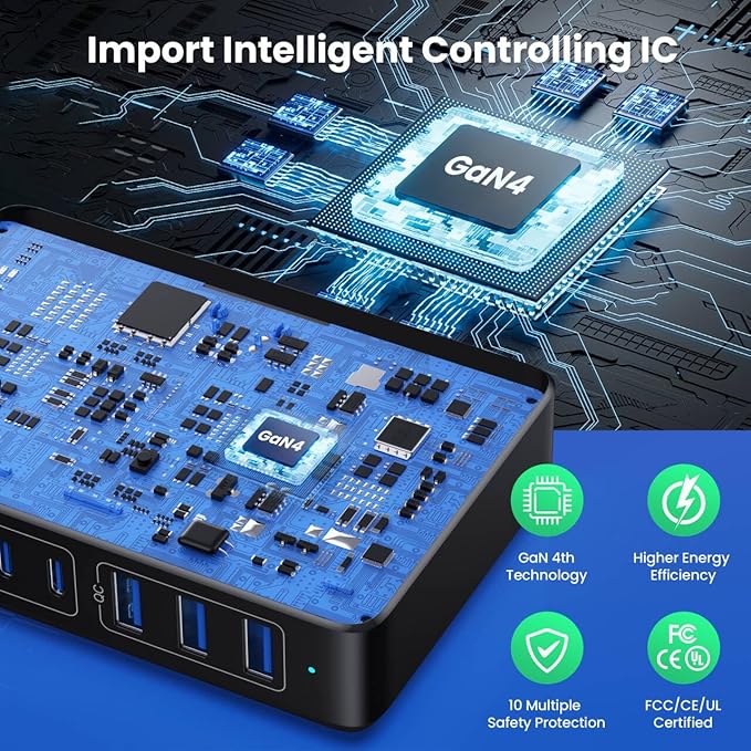 - 【Latest GAN Ⅳ Chip Technology Charger Station】The USB C charger adapted GaN Ⅳ generation chip technology, built-in multi-protection system and premium microchips. With higher energy efficiency, higher resistance to radiation and upgraded heat dissipation, Gallium Nitride (GaN) makes our chargers smaller and safer without sacrificing a drop of power. Trustworthy Charging Station with 3 Years Warranty!