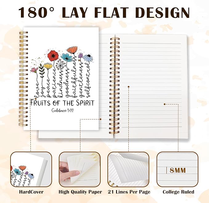 Qabliqo Fruit of the Spirit Christian Spiral Notebooks, Galatians 5:22 Bible Journals for Writing, Religious Scripture Journal for Women, Floral Bible Notebook for Note Taking, 5.5x8.3 Inch