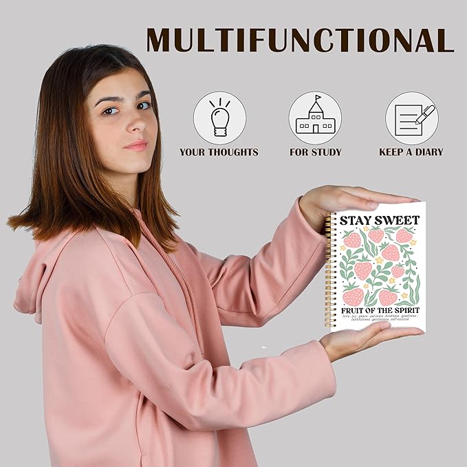 Qabliqo Fruit of the Spirit Christian Spiral Notebooks, Strawberry Bible Journals for Writing, Religious Scripture Journal for Women, Bible Verse Notebook for Note Taking, 5.5x8.3 Inch