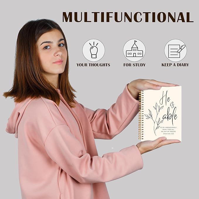 Qabliqo Christian Spiral Notebooks, Ephesians 3:20 Bible Journals for Writing, Religious Christian Journal for Women Men, He Is Able Bible Scripture Notebook for Note Taking, 5.5x8.3 Inch