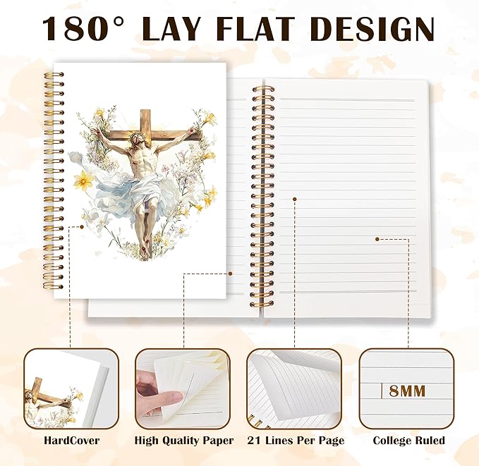 Qabliqo Christian Jesus Spiral Notebooks, Resurrection of Jesus Journals for Writing, Religious Christian Journal for Women Men, Faith Based Gifts Notebook for Note Taking, 5.5x8.3 Inch