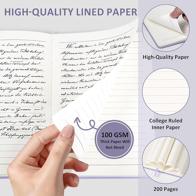 - 100Gsm Premium Paper - We use 100Gsm acid-free paper thick lined paper. Our journal paper is thicker than average notebooks & writing pads, so you can confidently use most pens, pencils, and markers. This superior-quality paper prevents any ink bleed-through, ensuring every note, sketch, or idea remains pristine and undisturbed on both sides. The Light yellow paper resists damage from light and air, and the paper protects your eyes from irritation.