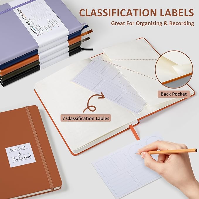 - 200 Pages A5 Notebook - This medium 5.7''×8.3'' inches A5 lined journal notebook features a waterproof brown faux leather cover, 8mm space classic college ruled notebook, and a total of 200 pages. The professional, durable, water-resistant leather hard cover will protect your notebooks, which have oil-resistant and anti-bending properties, effectively protecting the internal paper of the journal and providing a comfortable writing surface.